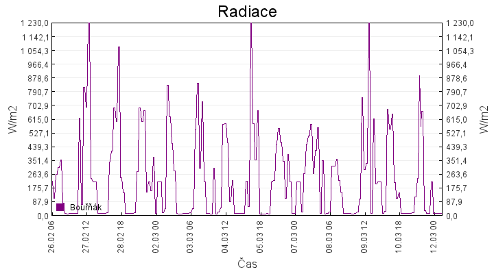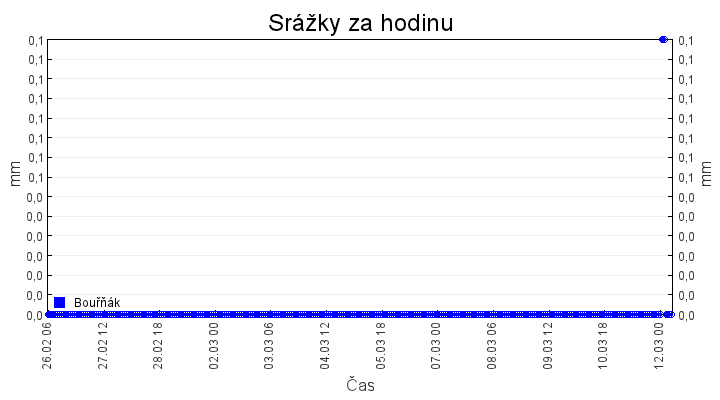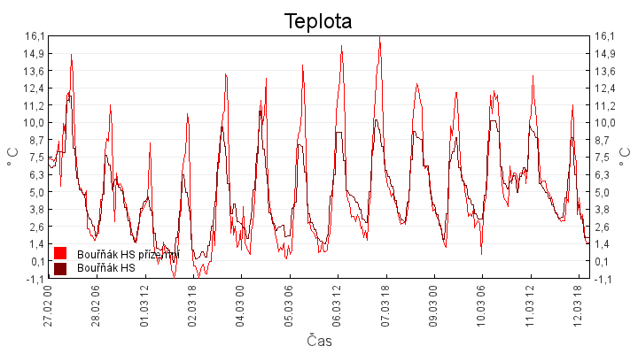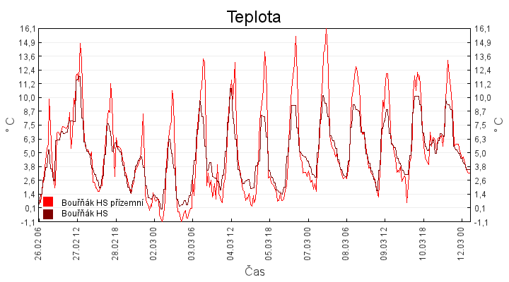 Aktuální hodnoty:Bouřňák HS (850 m): Datum: 08.12.2025 Čas: 14:50:00 Teplota: 7.39 °C Rychlost větru: 1.0 m/s Směr větru: 263.0 ° Radiace: 46.0 W/m2 Srážky 1h: 0.0 mm Srážky 24h: 3.1 mm Bouřňák HS (přízemní teplota) (850 m): Datum: 08.12.2025 Čas: 14:55:02 Teplota: 8.13 °C | Informace z Cínovce: Cínovec Předpověď počasí pro Bouřňák