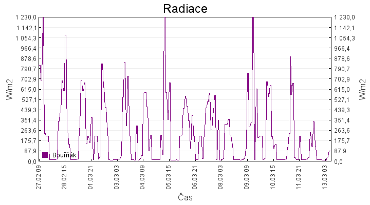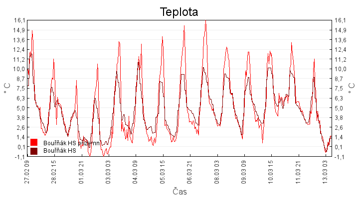 Aktuální hodnoty:Bouřňák HS (850 m): Datum: 12.02.2026 Čas: 08:10:00 Teplota: 1.46 °C Rychlost větru: 0.7 m/s Směr větru: 95.0 ° Radiace: 20.0 W/m2 Srážky 1h: 0.0 mm Srážky 24h: 4.3 mm Bouřňák HS (přízemní teplota) (850 m): Datum: 12.02.2026 Čas: 08:17:49 Teplota: 1.25 °C | Informace z Cínovce: Cínovec Předpověď počasí pro Bouřňák