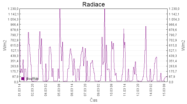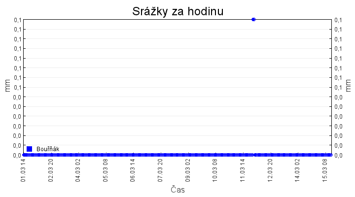 Aktuální hodnoty:Bouřňák HS (850 m): Datum: 15.03.2026 Čas: 12:29:00 Teplota: 1.34 °C Rychlost větru: 3.8 m/s Směr větru: 27.0 ° Radiace: 77.0 W/m2 Srážky 1h: 0.0 mm Srážky 24h: 0.3 mm Bouřňák HS (přízemní teplota) (850 m): Datum: 15.03.2026 Čas: 12:35:46 Teplota: 1.69 °C | Informace z Cínovce: Cínovec Předpověď počasí pro Bouřňák