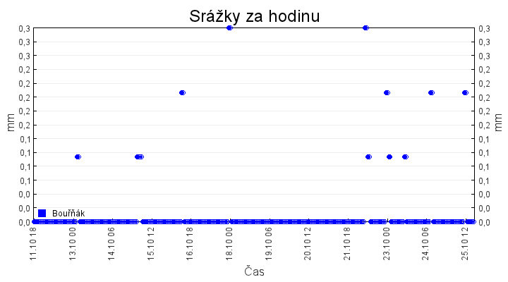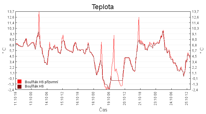 Aktuální hodnoty:Bouřňák HS (850 m): Datum: 25.10.2025 Čas: 08:30:00 Teplota: 0.92 °C Rychlost větru: 1.7 m/s Směr větru: 127.0 ° Radiace: 16.0 W/m2 Srážky 1h: 0.0 mm Srážky 24h: 2.0 mm Bouřňák HS (přízemní teplota) (850 m): Datum: 25.10.2025 Čas: 08:29:29 Teplota: 0.94 °C | Informace z Cínovce: Cínovec Předpověď počasí pro Bouřňák