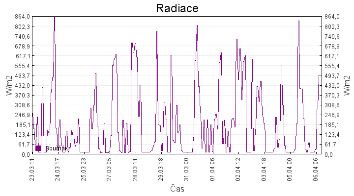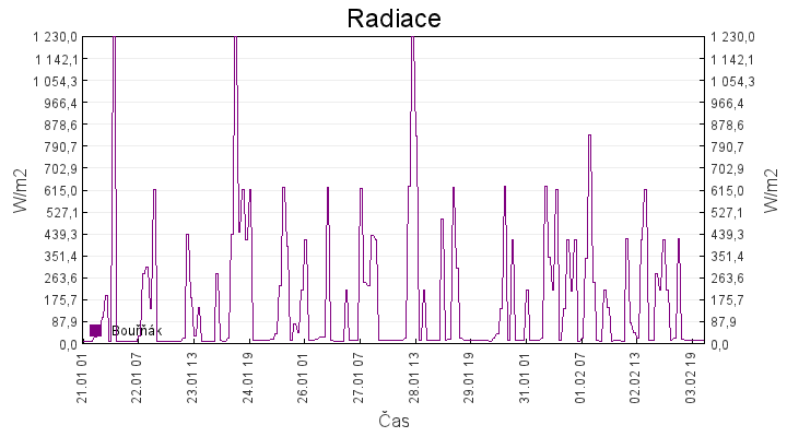 | GrafyTeplota za 14 dní Rychlost větru za 14 dní Směr větru za 14 dní Srážky za hodinu za 14 dní Radiace za 14 dní Předpověď počasí na 48 hodinCloud cover - oblačnost