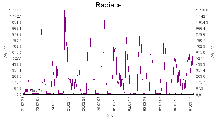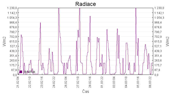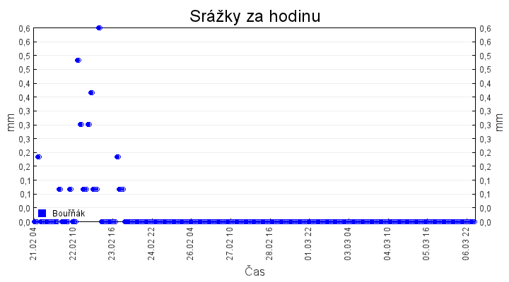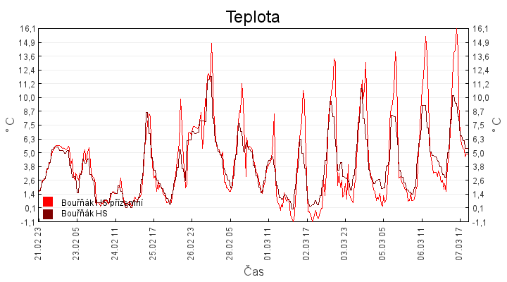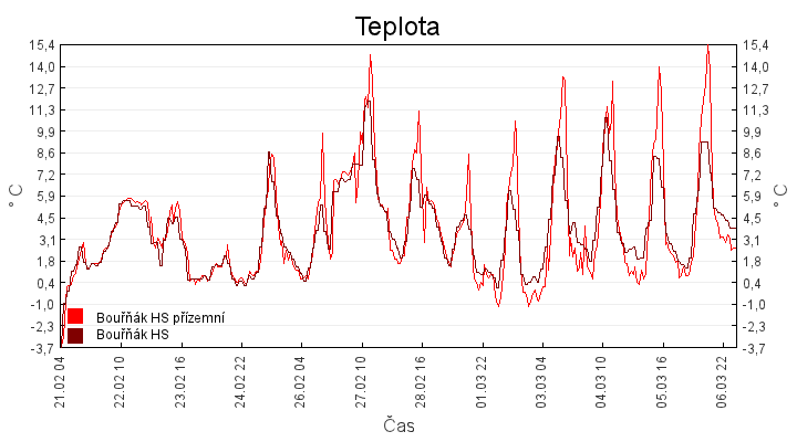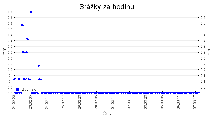 Aktuální hodnoty:Bouřňák HS (850 m): Datum: 07.03.2026 Čas: 01:30:00 Teplota: 4.15 °C Rychlost větru: 0.7 m/s Směr větru: 125.0 ° Radiace: 11.0 W/m2 Srážky 1h: 0.0 mm Srážky 24h: 0.0 mm Bouřňák HS (přízemní teplota) (850 m): Datum: 07.03.2026 Čas: 01:33:38 Teplota: 4.12 °C | Informace z Cínovce: Cínovec Předpověď počasí pro Bouřňák