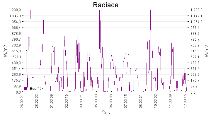 Aktuální hodnoty:Bouřňák HS (850 m): Datum: 11.03.2026 Čas: 19:50:00 Teplota: 5.68 °C Rychlost větru: 1.4 m/s Směr větru: 205.0 ° Radiace: 11.0 W/m2 Srážky 1h: 0.0 mm Srážky 24h: 0.6 mm Bouřňák HS (přízemní teplota) (850 m): Datum: 11.03.2026 Čas: 19:56:24 Teplota: 5.75 °C | Informace z Cínovce: Cínovec Předpověď počasí pro Bouřňák