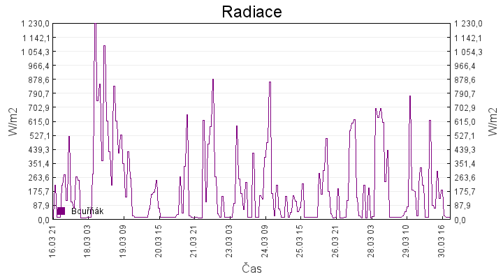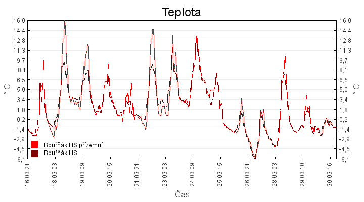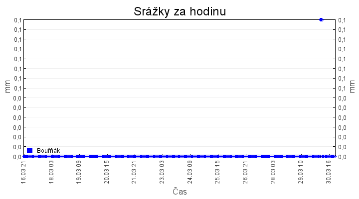 Aktuální hodnoty:Bouřňák HS (850 m): Datum: 30.03.2026 Čas: 20:39:00 Teplota: -1.06 °C Rychlost větru: 10.1 m/s Směr větru: 160.0 ° Radiace: 11.0 W/m2 Srážky 1h: 0.0 mm Srážky 24h: 1.0 mm Bouřňák HS (přízemní teplota) (850 m): Datum: 30.03.2026 Čas: 20:43:33 Teplota: -0.94 °C | Informace z Cínovce: Cínovec Předpověď počasí pro Bouřňák