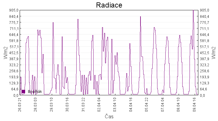 Aktuální hodnoty:Bouřňák HS (850 m): Datum: 09.04.2026 Čas: 21:00:00 Teplota: 0.38 °C Rychlost větru: 1.7 m/s Směr větru: 80.0 ° Radiace: 10.0 W/m2 Srážky 1h: 0.0 mm Srážky 24h: 0.0 mm Bouřňák HS (přízemní teplota) (850 m): Datum: 09.04.2026 Čas: 21:11:11 Teplota: -1.31 °C | Informace z Cínovce: Cínovec Předpověď počasí pro Bouřňák