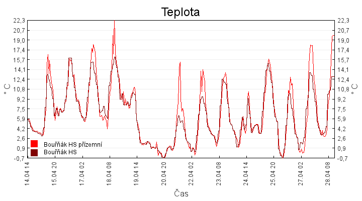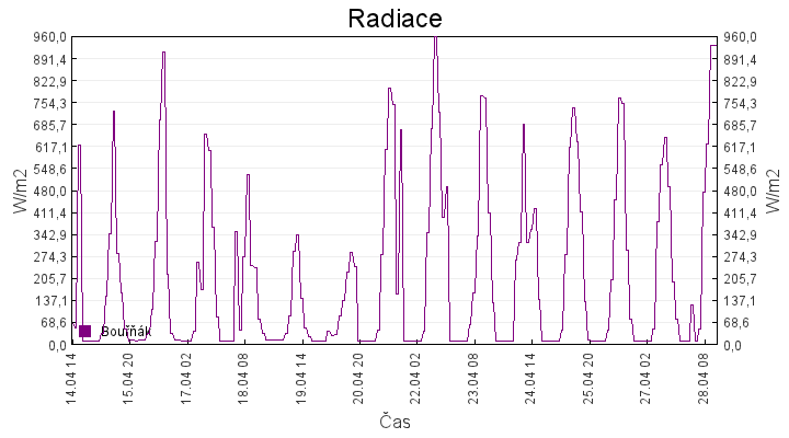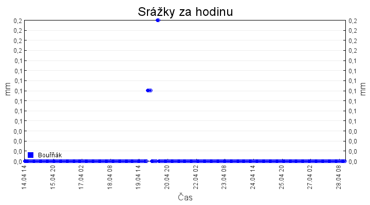 Aktuální hodnoty:Bouřňák HS (850 m): Datum: 26.04.2026 Čas: 13:10:00 Teplota: 9.02 °C Rychlost větru: 3.9 m/s Směr větru: 350.0 ° Radiace: 684.0 W/m2 Srážky 1h: 0.0 mm Srážky 24h: 0.0 mm Bouřňák HS (přízemní teplota) (850 m): Datum: 26.04.2026 Čas: 13:18:25 Teplota: 11.75 °C | Informace z Cínovce: Cínovec Předpověď počasí pro Bouřňák