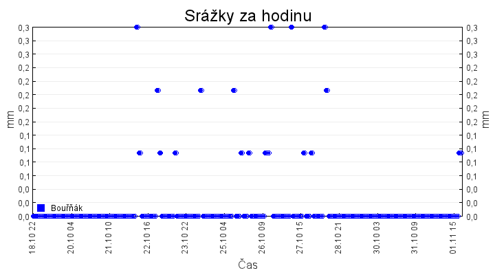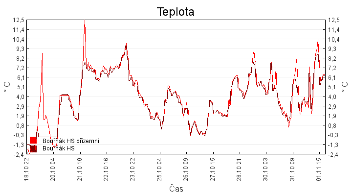 Aktuální hodnoty:Bouřňák HS (850 m): Datum: 01.11.2025 Čas: 05:19:00 Teplota: 5.34 °C Rychlost větru: 1.1 m/s Směr větru: 198.0 ° Radiace: 30.0 W/m2 Srážky 1h: 0.0 mm Srážky 24h: 0.0 mm Bouřňák HS (přízemní teplota) (850 m): Datum: 01.11.2025 Čas: 05:27:04 Teplota: 3.94 °C | Informace z Cínovce: Cínovec Předpověď počasí pro Bouřňák