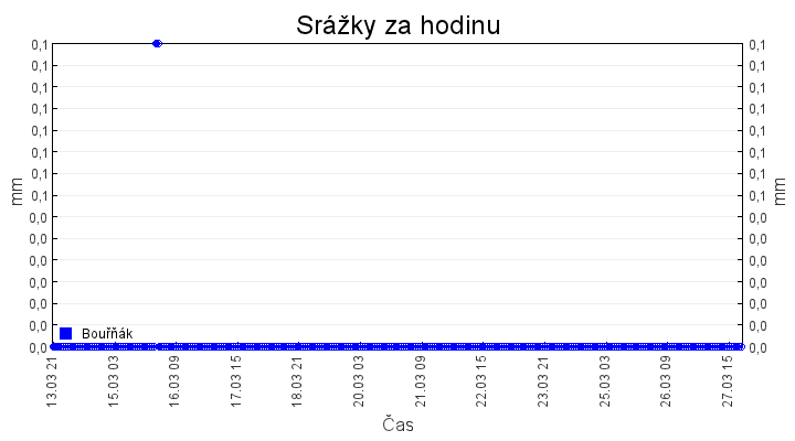 Aktuální hodnoty:Bouřňák HS (850 m): Datum: 27.03.2026 Čas: 19:49:00 Teplota: -2.38 °C Rychlost větru: 6.2 m/s Směr větru: 23.0 ° Radiace: 213.0 W/m2 Srážky 1h: 0.0 mm Srážky 24h: 0.0 mm Bouřňák HS (přízemní teplota) (850 m): Datum: 27.03.2026 Čas: 19:56:15 Teplota: -2.37 °C | Informace z Cínovce: Cínovec Předpověď počasí pro Bouřňák