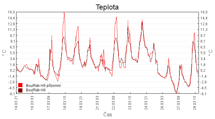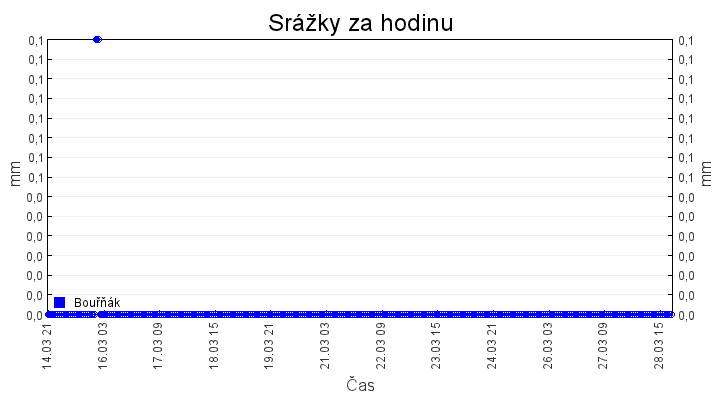 Aktuální hodnoty:Bouřňák HS (850 m): Datum: 28.03.2026 Čas: 19:39:00 Teplota: -0.06 °C Rychlost větru: 6.8 m/s Směr větru: 118.0 ° Radiace: 11.0 W/m2 Srážky 1h: 0.0 mm Srážky 24h: 0.0 mm Bouřňák HS (přízemní teplota) (850 m): Datum: 28.03.2026 Čas: 19:46:12 Teplota: -0.06 °C | Informace z Cínovce: Cínovec Předpověď počasí pro Bouřňák