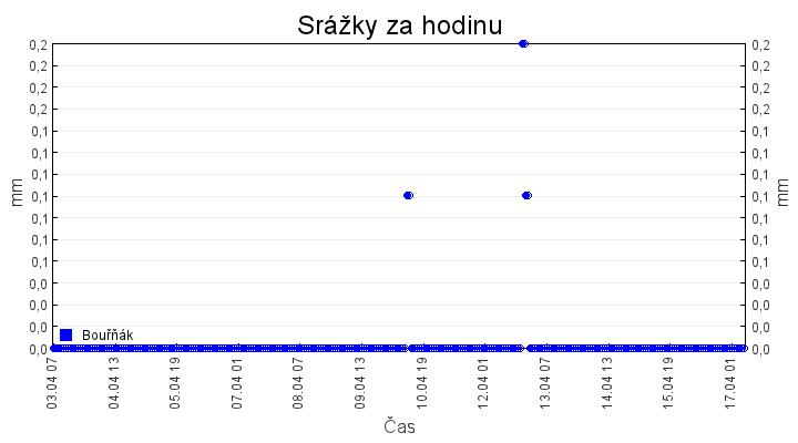 Aktuální hodnoty:Bouřňák HS (850 m): Datum: 17.04.2026 Čas: 06:00:00 Teplota: 5.44 °C Rychlost větru: 5.6 m/s Směr větru: 5.0 ° Radiace: 12.0 W/m2 Srážky 1h: 0.0 mm Srážky 24h: 0.0 mm Bouřňák HS (přízemní teplota) (850 m): Datum: 17.04.2026 Čas: 06:05:56 Teplota: 5.37 °C | Informace z Cínovce: Cínovec Předpověď počasí pro Bouřňák