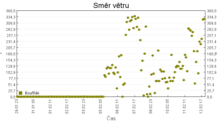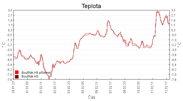 Aktuální hodnoty:Bouřňák HS (850 m): Datum: 11.02.2026 Čas: 22:10:00 Teplota: 3.08 °C Rychlost větru: 3.9 m/s Směr větru: 270.0 ° Radiace: 11.0 W/m2 Srážky 1h: 0.1 mm Srážky 24h: 2.7 mm Bouřňák HS (přízemní teplota) (850 m): Datum: 11.02.2026 Čas: 22:18:50 Teplota: 3.44 °C | Informace z Cínovce: Cínovec Předpověď počasí pro Bouřňák