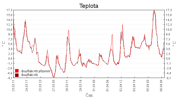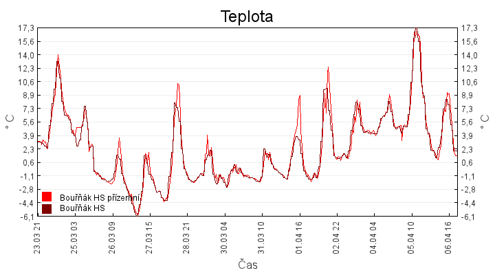 Aktuální hodnoty:Bouřňák HS (850 m): Datum: 06.04.2026 Čas: 20:40:00 Teplota: 2.34 °C Rychlost větru: 4.5 m/s Směr větru: 327.0 ° Radiace: 214.0 W/m2 Srážky 1h: 0.0 mm Srážky 24h: 0.5 mm Bouřňák HS (přízemní teplota) (850 m): Datum: 06.04.2026 Čas: 20:48:21 Teplota: 2.00 °C | Informace z Cínovce: Cínovec Předpověď počasí pro Bouřňák